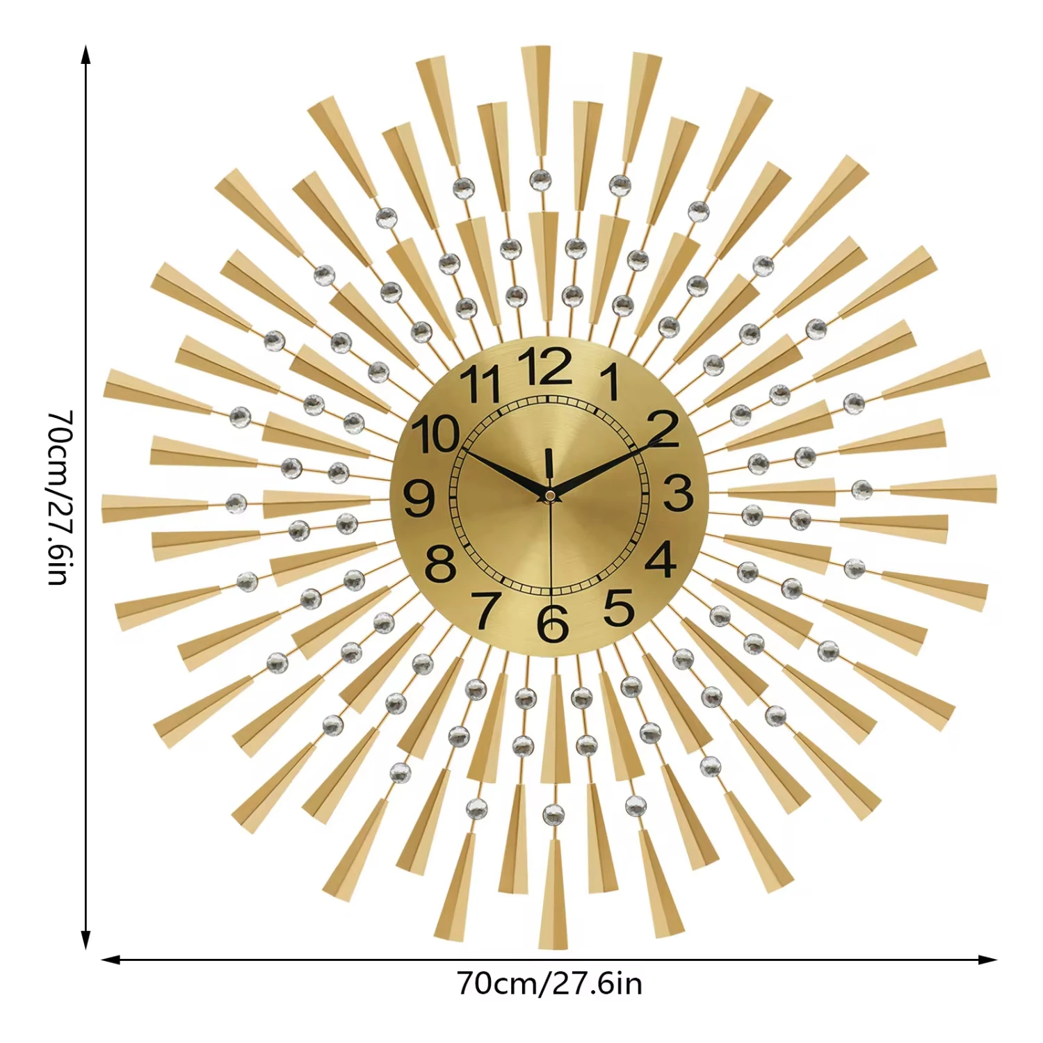 Creative Appearance: 3-ring Acrylic crystals are evenly embellished between the round frame formed with 3-ring triangles, making this wall clock like a sparkling sun. It brings you a positive life meaning while decorating the walls of your .
