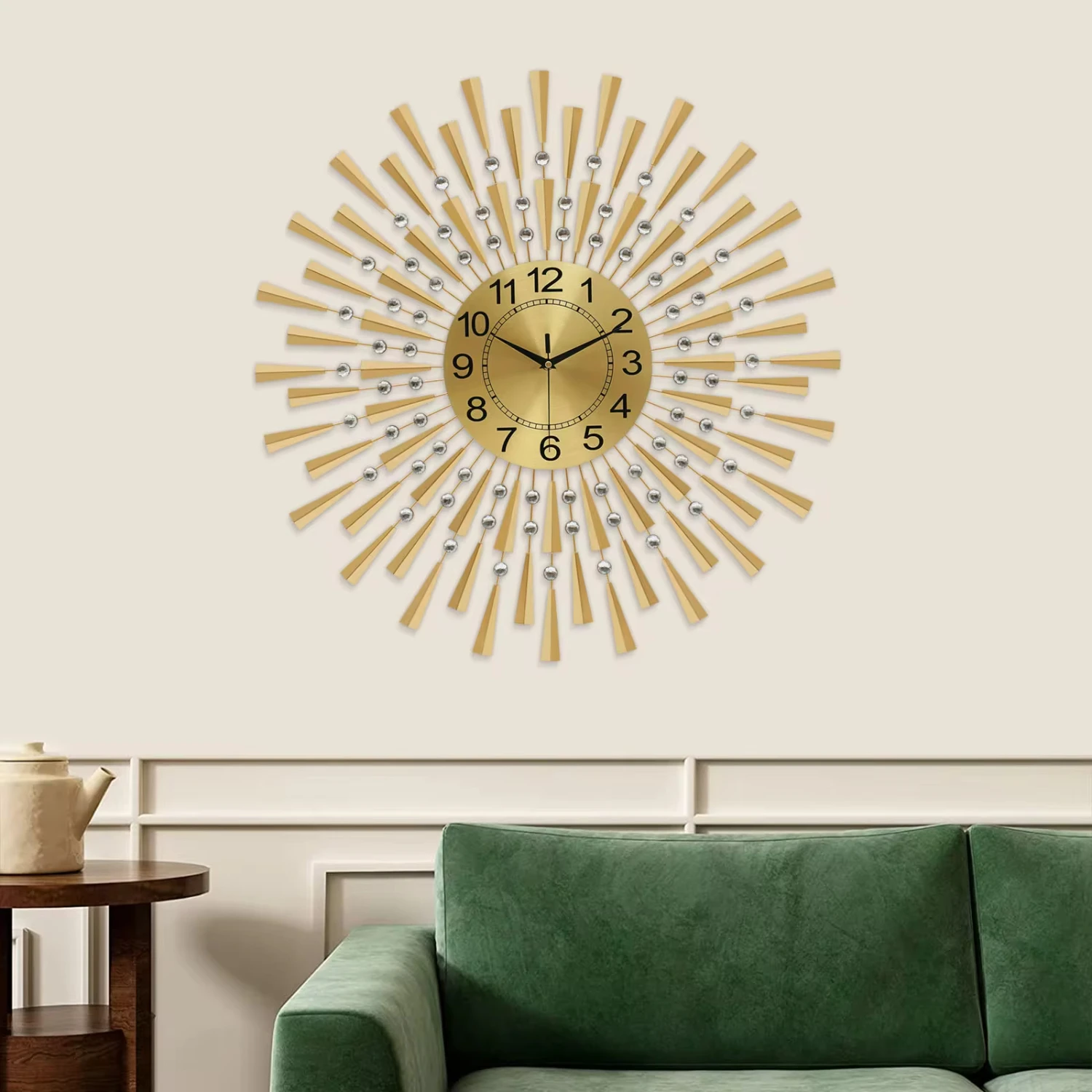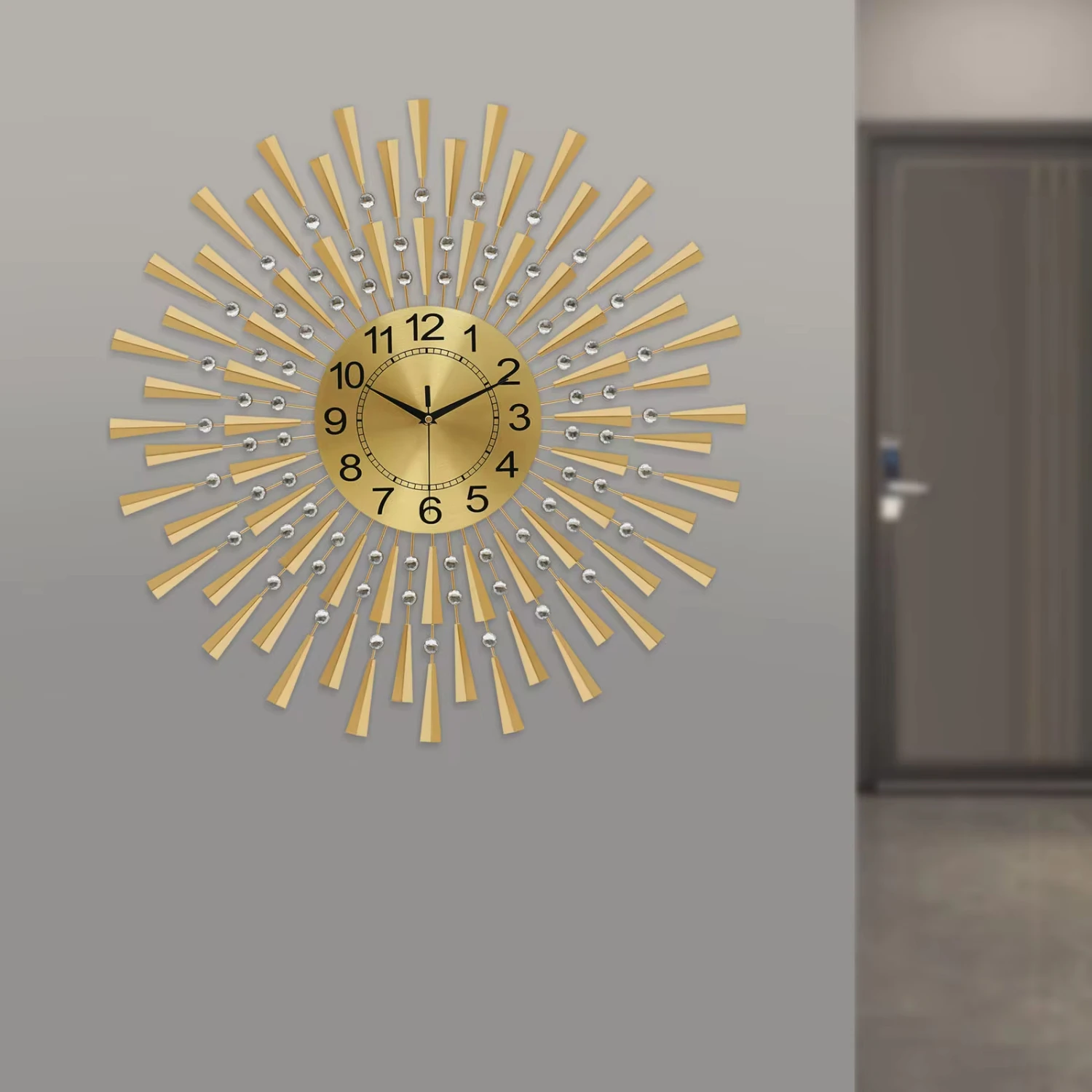 2. Add a touch of sophistication to your decor with this stunning gold wall clock. Its acrylic body and intricate needle display make it a stylish addition to any room.