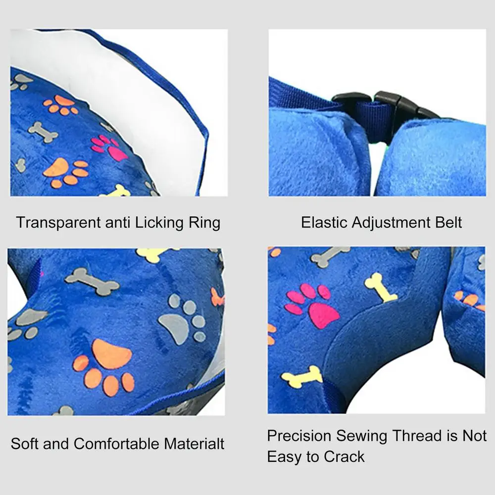 1、Wider Anti-Licking Area: This dog's post-operative collar adds a clear soft shield, which can better prevent active dogs from touching the rear part of the body, limiting the risk of pet self-harm. 2、Comfortable Plush Cover: This inflatable dog cone has a soft plush cover that provides cushioned protection for your pet's neck and prevents irritation. Your dog can eat, play, lie down, and rest comfortably. 3、Adjustable Collar: You can easily adjust the size of this dog inflatable recovery collar with a quick release buckle to ensure a snug fit for your furry friend. 4、Easy to Use: You can easily inflate this dog donut collar to 80% full with a pump or mouth. Press the valves mouth into the dog cone cover to prevent dogs from biting it off. 5、Easy to Clean: The dog neck donut has a zipper that allows you to remove the outer cover and wash it separately, keeping your pet's collar tidy and hygienic. Description: Protect your dog's wounds with this inflatable dog cone. Made of soft and transparent PVC, it won't block your dog's vision or irritate its skin. The adjustable collar fits most sizes and can be easily inflated. The cone is also easy to clean and store. Specification: Material: PVC Size and weight: S: inner diameter 5.5CM/2.17in, outer diameter 20CM/7.87in, 110g M: inner diameter 9CM/3.54in, outer diameter 26CM/10.24in, 147g L: inner diameter 13CM/5.12in, outer diameter 38CM/14.96in, 263g XL: inner diameter 15CM/5.91in, outer diameter 41CM/16.14in, 324g Packing List: 1 x dog cone