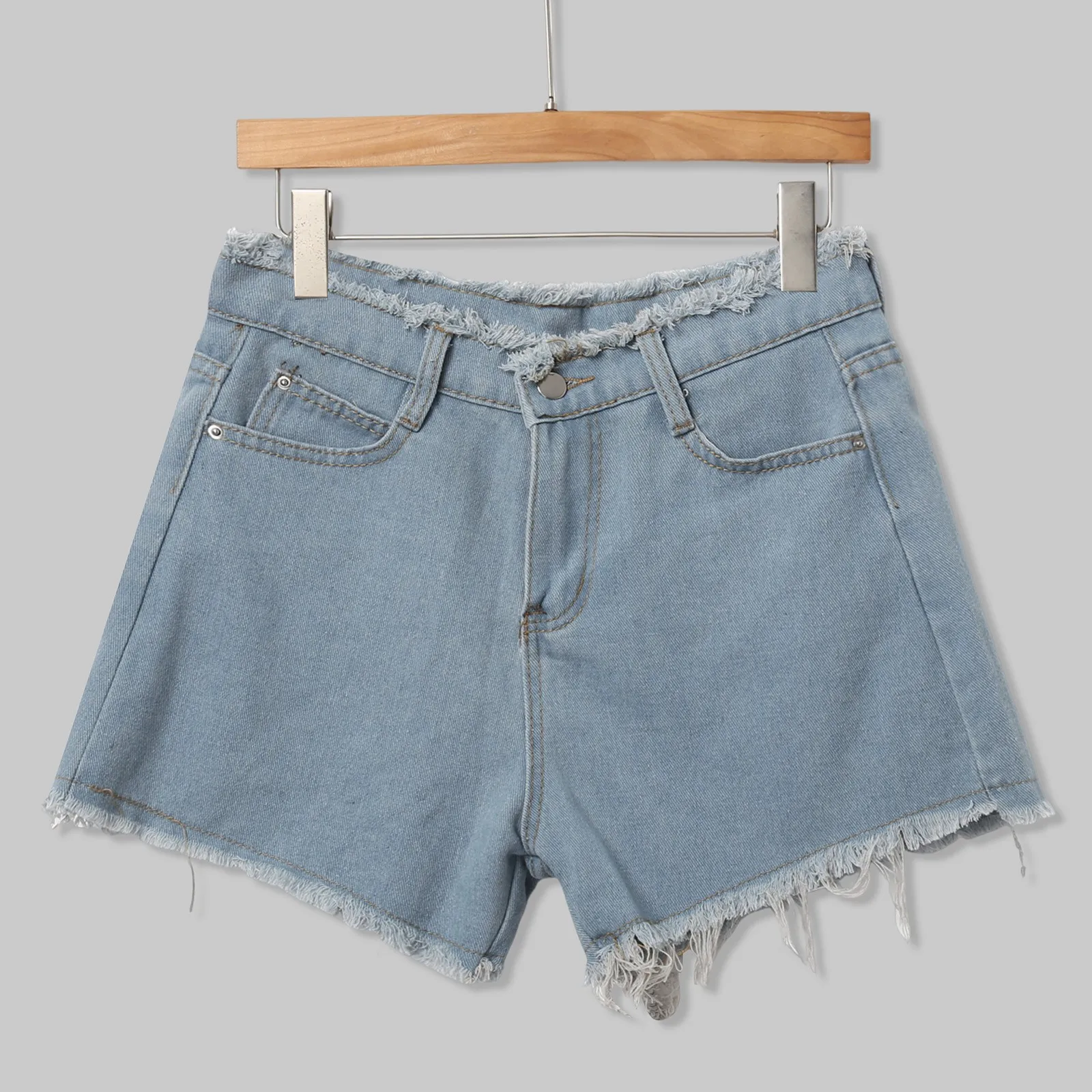 • Great for everyday outfits. Very classic blue denim shorts.