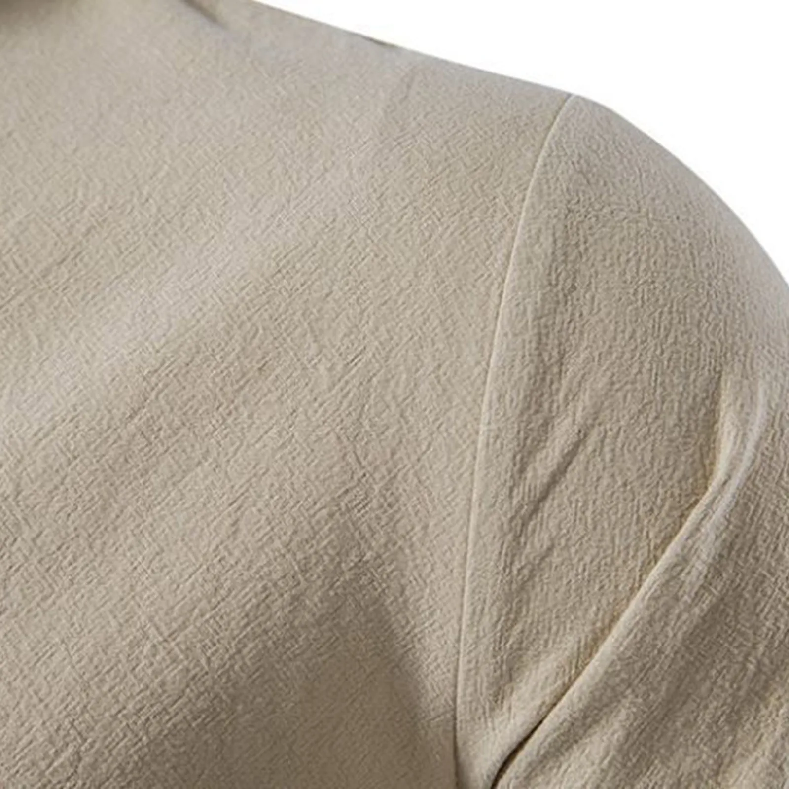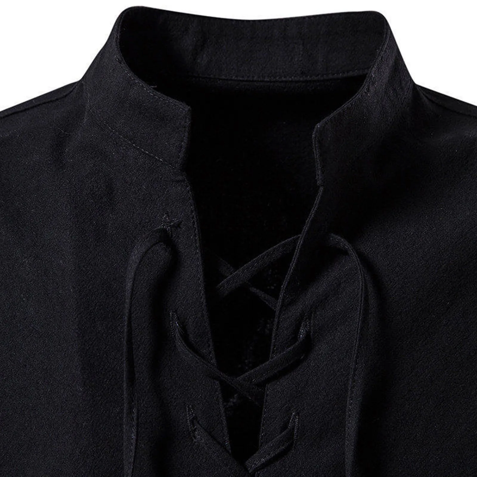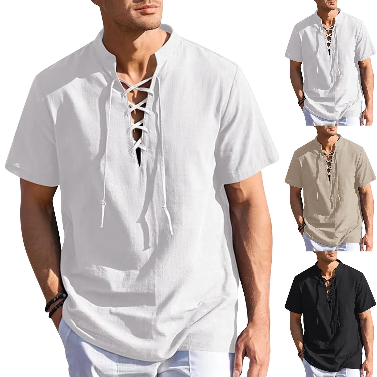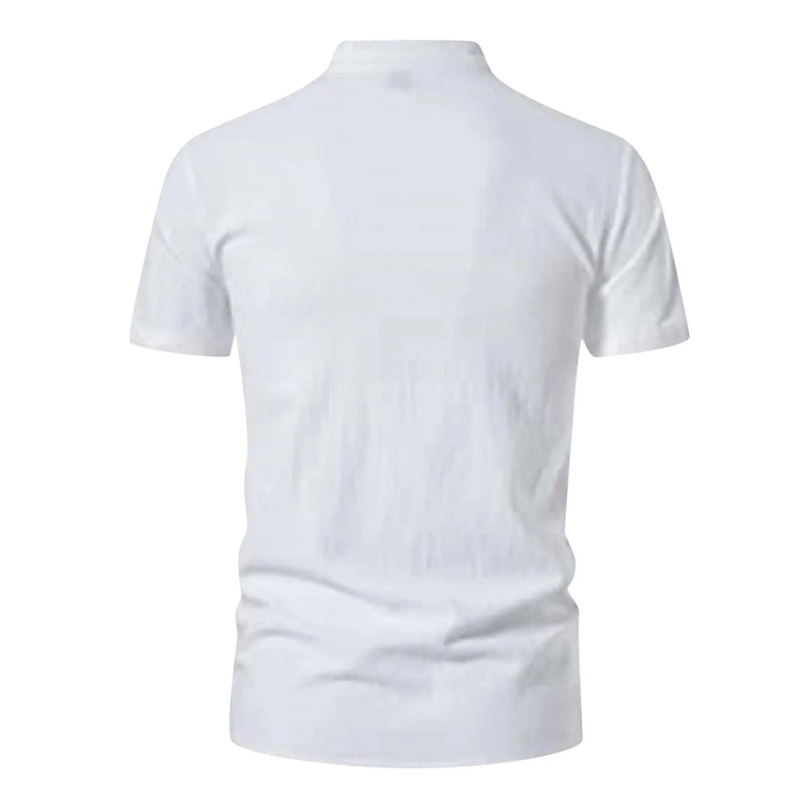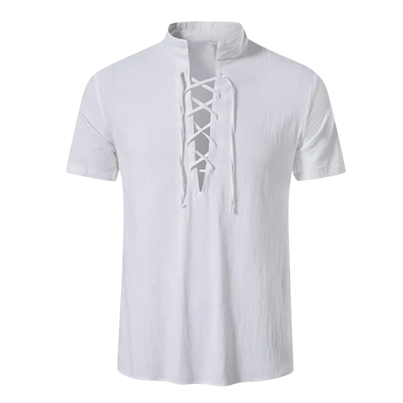 Men's Short Sleeve Summer Cotton Linen Shirt Plus Size H Enry Stand C Ollar Beach Shirt Medieval Clothing